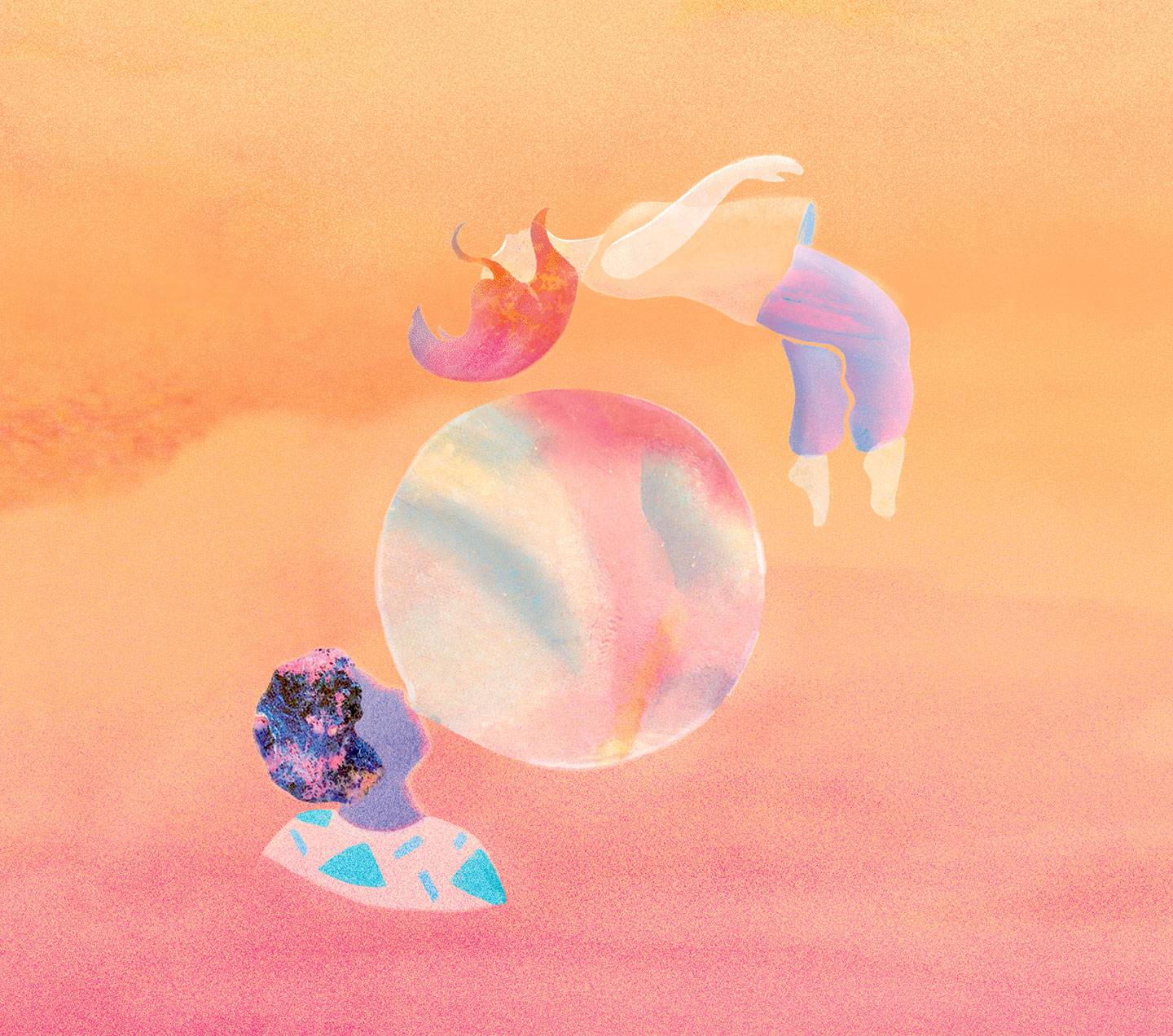 Sur une scène épurée, une acrobate s’adonne à l’acrodanse, discipline artistique mêlant danse et cirque, pendant qu’un beat-boxeur l’accompagne en musique. Tous deux font l’expérience des sensations de leurs corps dans l’air.