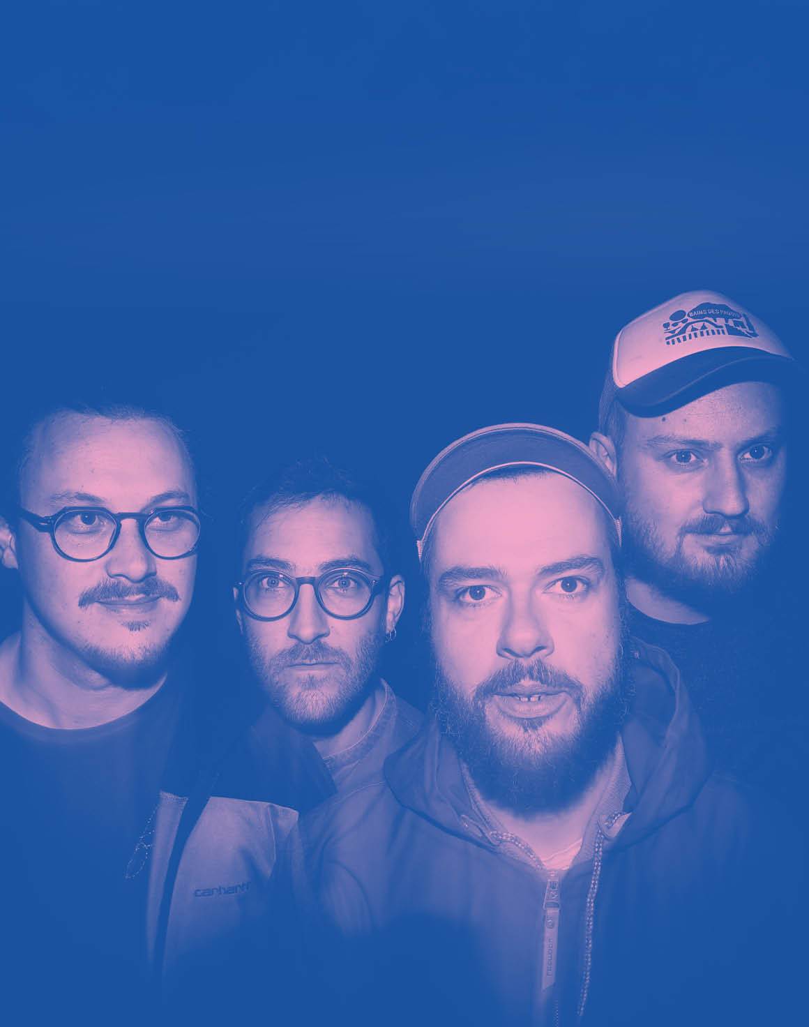 Super Parquet : Julien Baratay – machines, voix, Antoine Cognet – banjo, Simon Drouhin – boîte à bourdon, synthétiseur, Louis Jacques – cabrette, cornemuse du centre, voix.